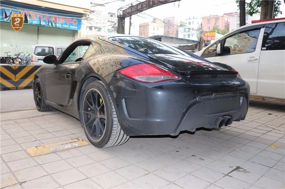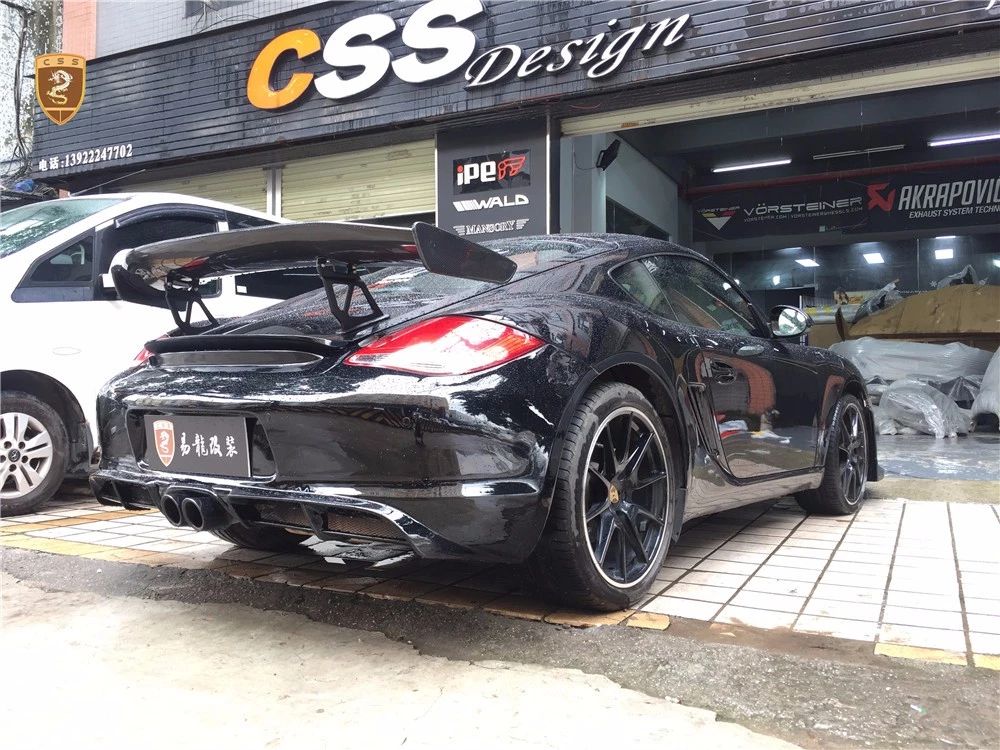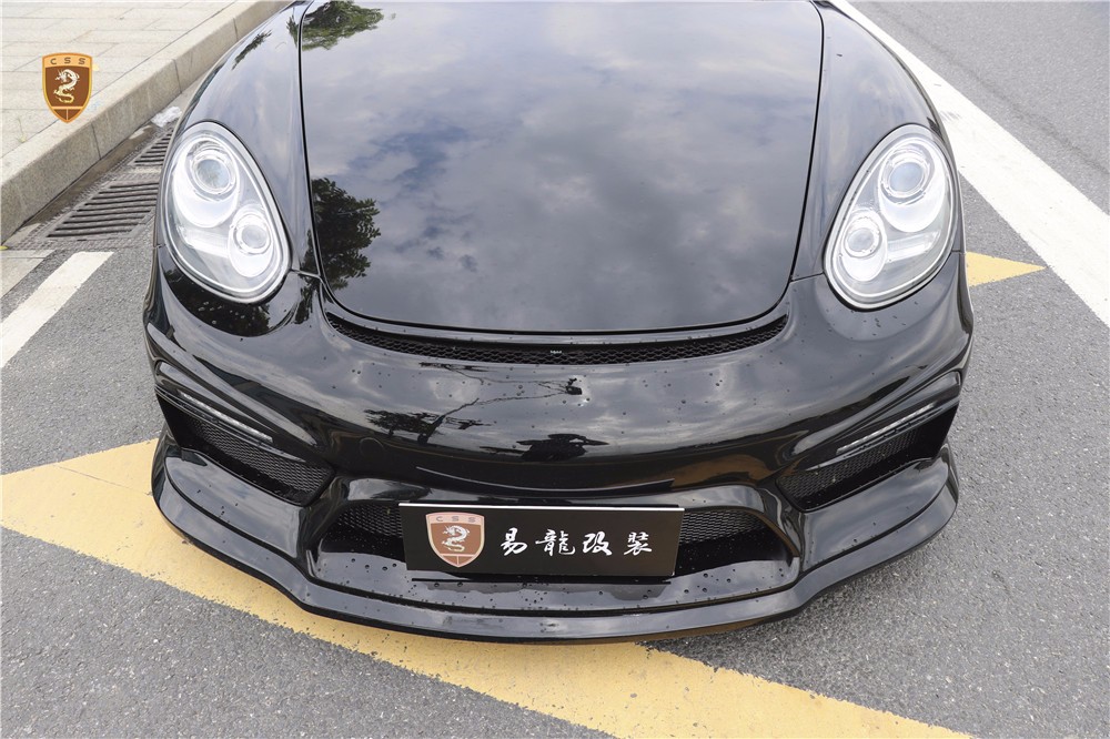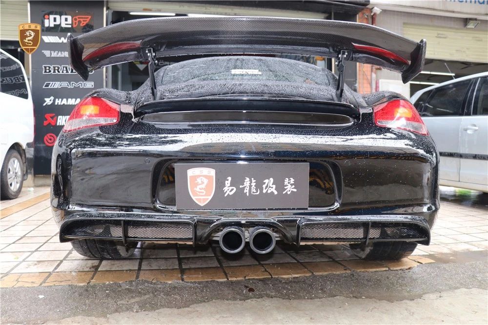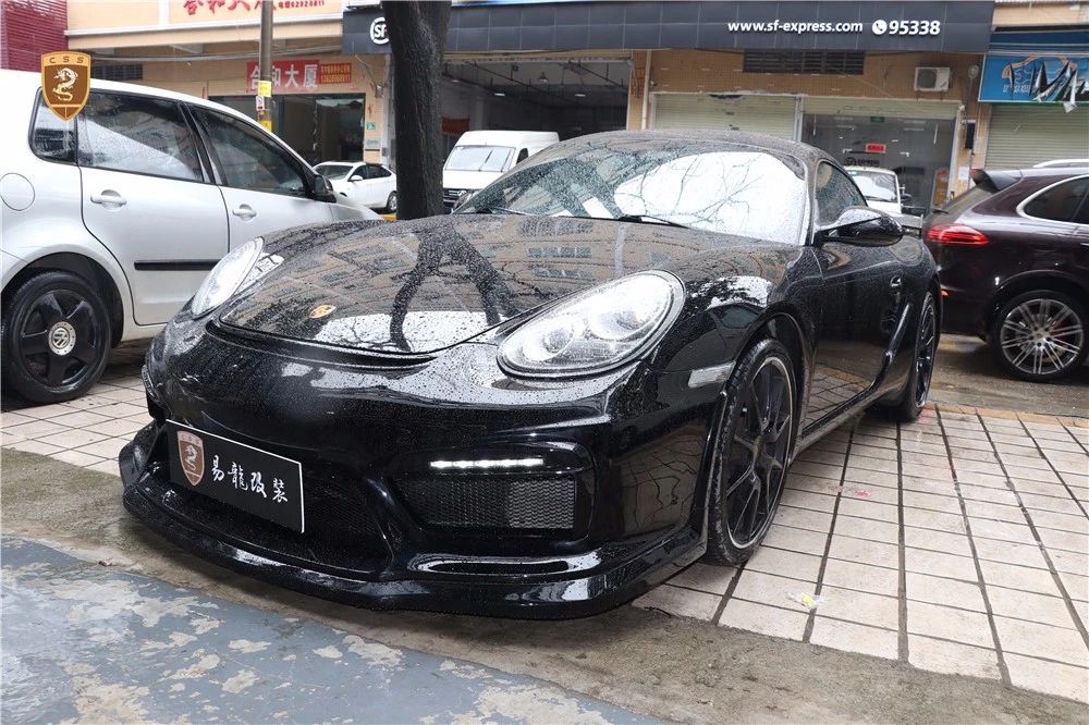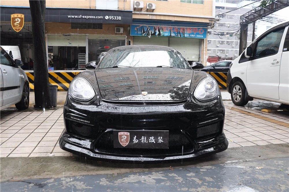 保时捷987 Cayman改装GT4套件部件只有单纯的三部分。哪怕部件少安装方便还是需要花时间调整才能达到最佳效果。如果你想进一步搭配的话可以定制选择半碳纤维GT4套件。