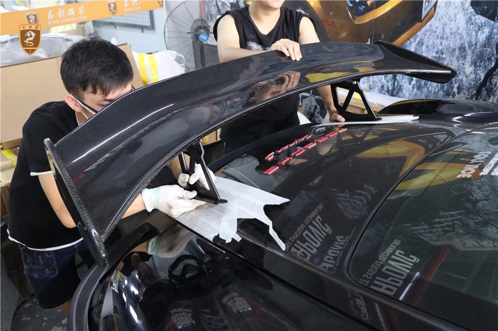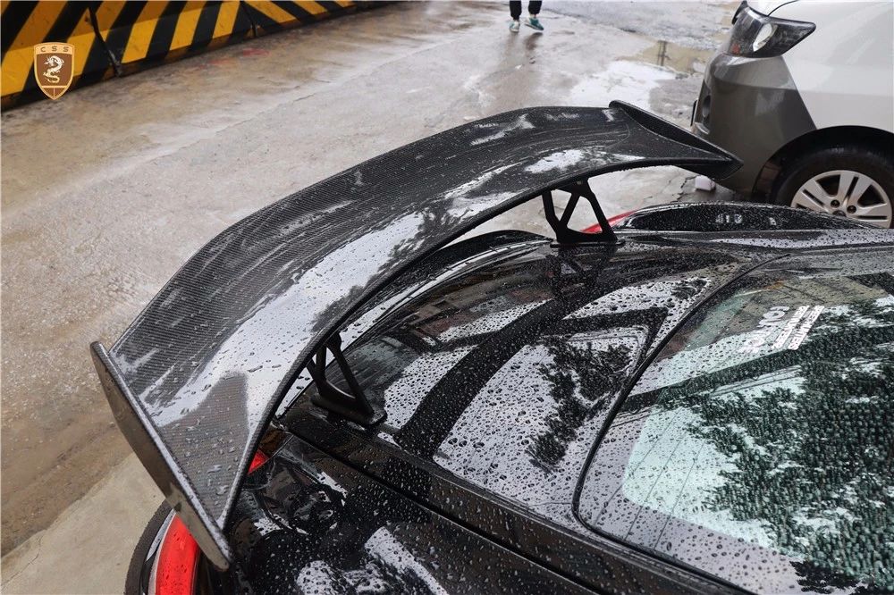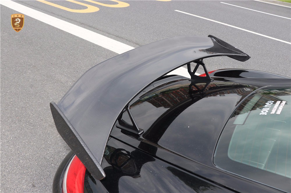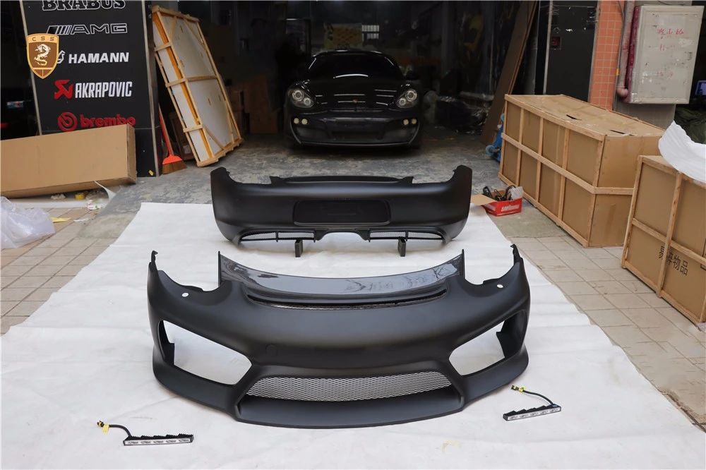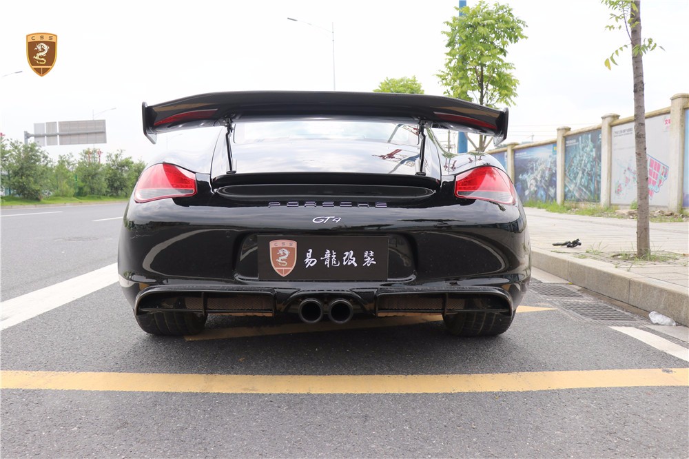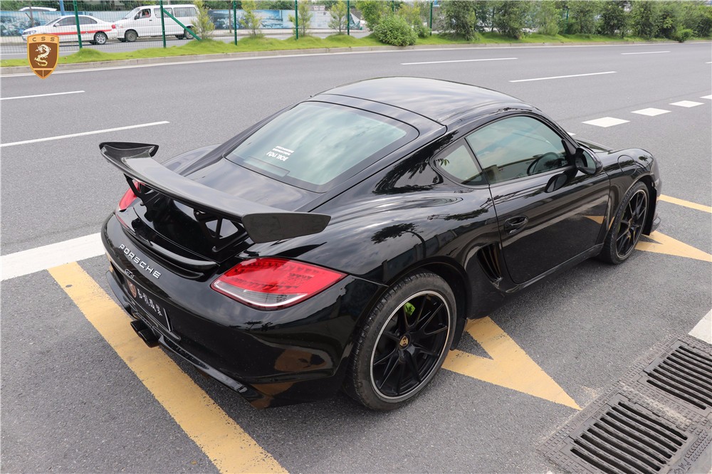 保时捷987 Cayman改装GT4套件部件只有单纯的三部分。哪怕部件少安装方便还是需要花时间调整才能达到最佳效果。如果你想进一步搭配的话可以定制选择半碳纤维GT4套件。