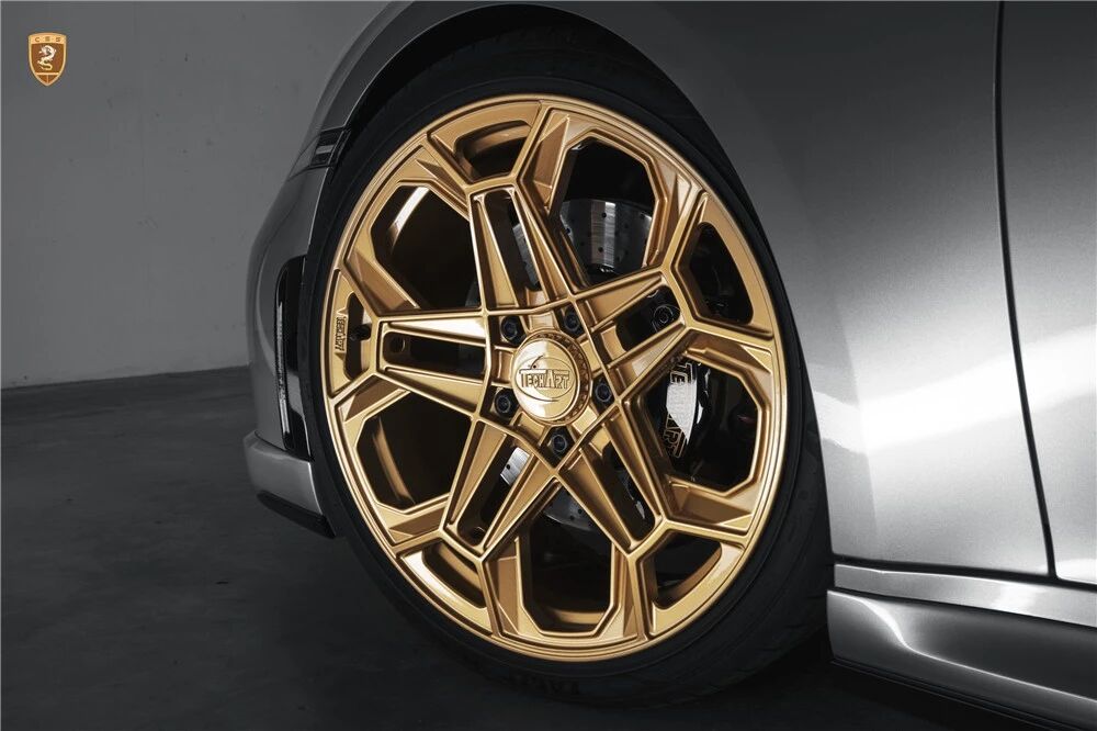 配合着前杠侧裙不仅增加车身的流线条并且也有实质的作用。轮毂方面专门设计为金色与之撞色。