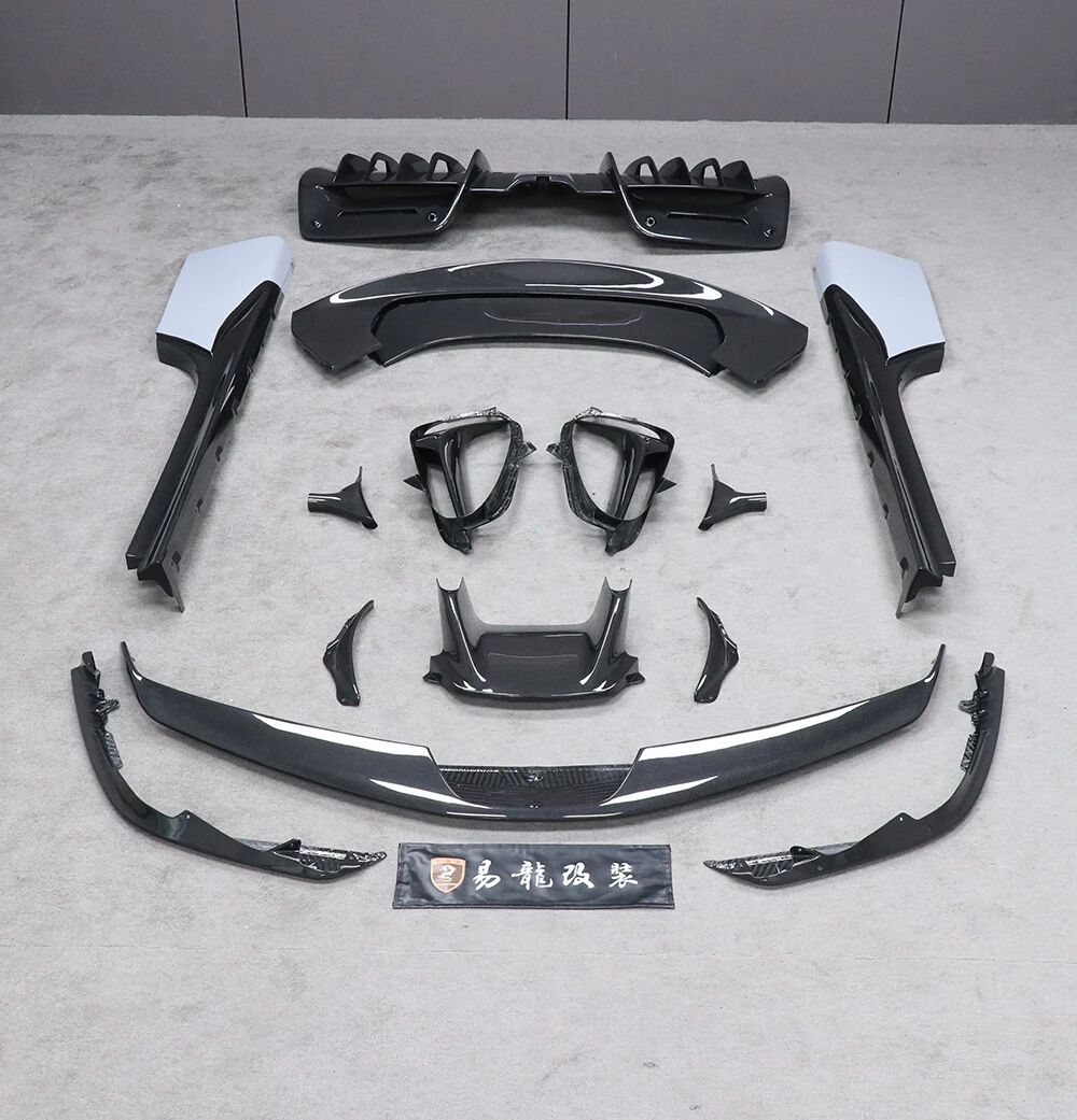 法拉利SF90改装干碳纤OEM包围前唇包角风口侧裙尾翼后唇